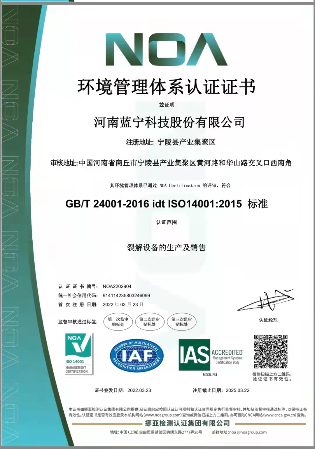 環境管理體系證書